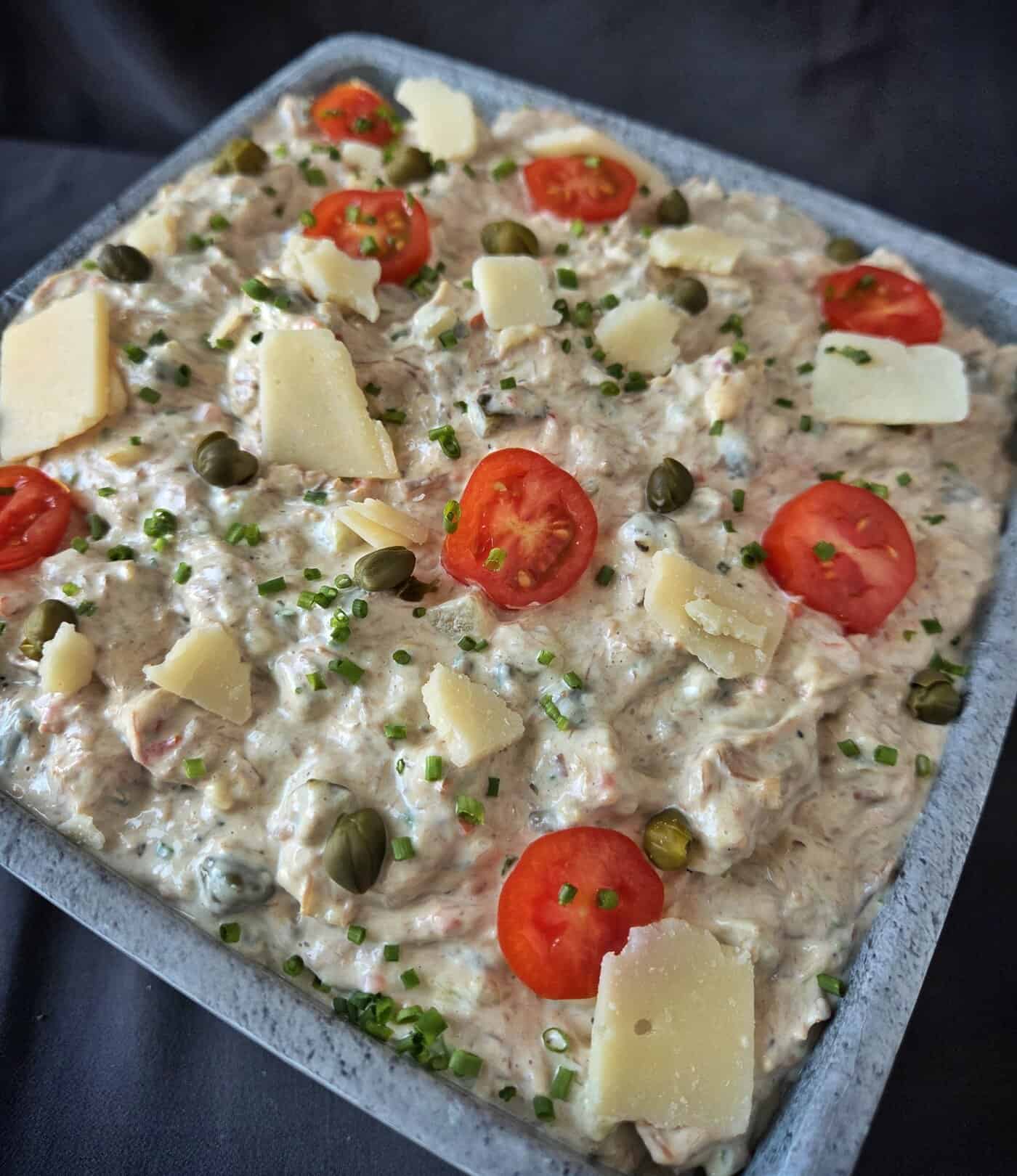 Onze tonijn salade wordt bereid met uitgeselecteerde tonijn van hoogwaardige kwaliteit. De tonijn wordt fijn verwerkt en op smaak gebracht met een zachte en romige basis, gecombineerd met specerijen voor een frisse en volle smaakbeleving. De salade is volledig zonder kleurstoffen en zonder smaakstoffen, zodat de pure tonijnsmaak op de voorgrond blijft. Wij gebruiken natriumarm zout, wat de smaak mild en eerlijk houdt. Deze salade is heerlijk voor op toast, brood of als voorgerecht bij vitello tonatto.